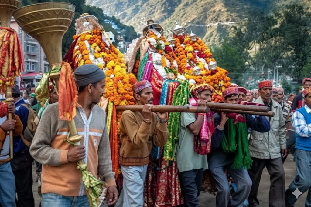 • Deity Assembly: Hundreds of local gods and goddesses from surrounding valleys are carried in palanquins to meet Lord Raghunath, the head deity.