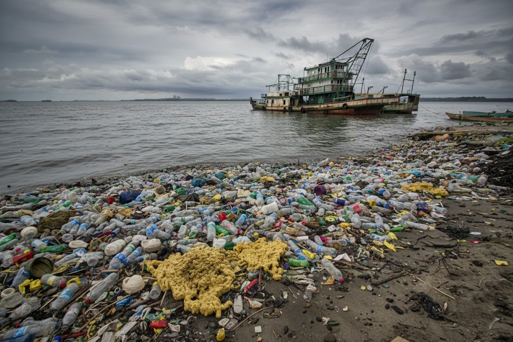 Plastic and polyurethane (PU) pollution in Palampur, Himachal Pradesh, poses severe ecological threats, including toxic contamination of the Neugal river and soil from mismanaged landfill waste. Key impacts include respiratory illnesses from burning,, microplastic accumulation in agricultural soil, and threats to livestock. Future initiatives focus on improved waste segregation, plastic-based road construction, and strict, high-penalty bans on single-use items.